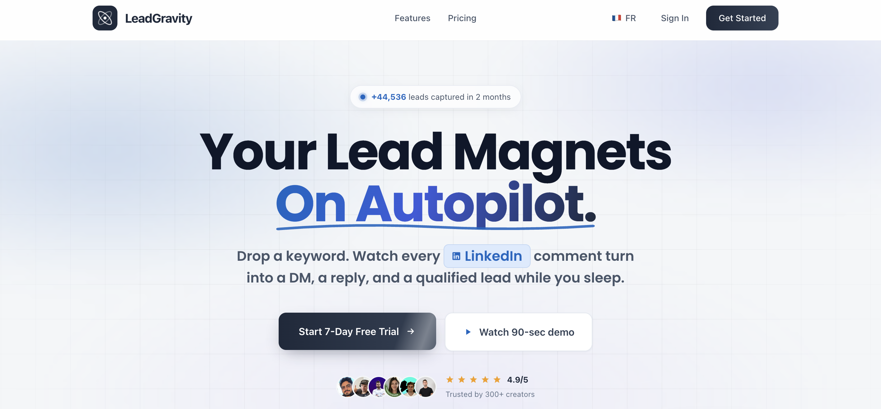 LeadGravity se distingue par son intégration native sans extension, son respect strict des règles LinkedIn et sa pile fonctionnelle complète. La combinaison du générateur de contenu IA, de la bibliothèque de lead magnets et des contrôles de sécurité crée un système autonome pour maintenir une présence active 24/7 et convertir l'engagement organique en clients qualifiés. Les fonctionnalités avancées comme le matching par mots clés, le support regex et les exclusions offrent un ciblage fin que la plupart des concurrents n'égaleront pas.