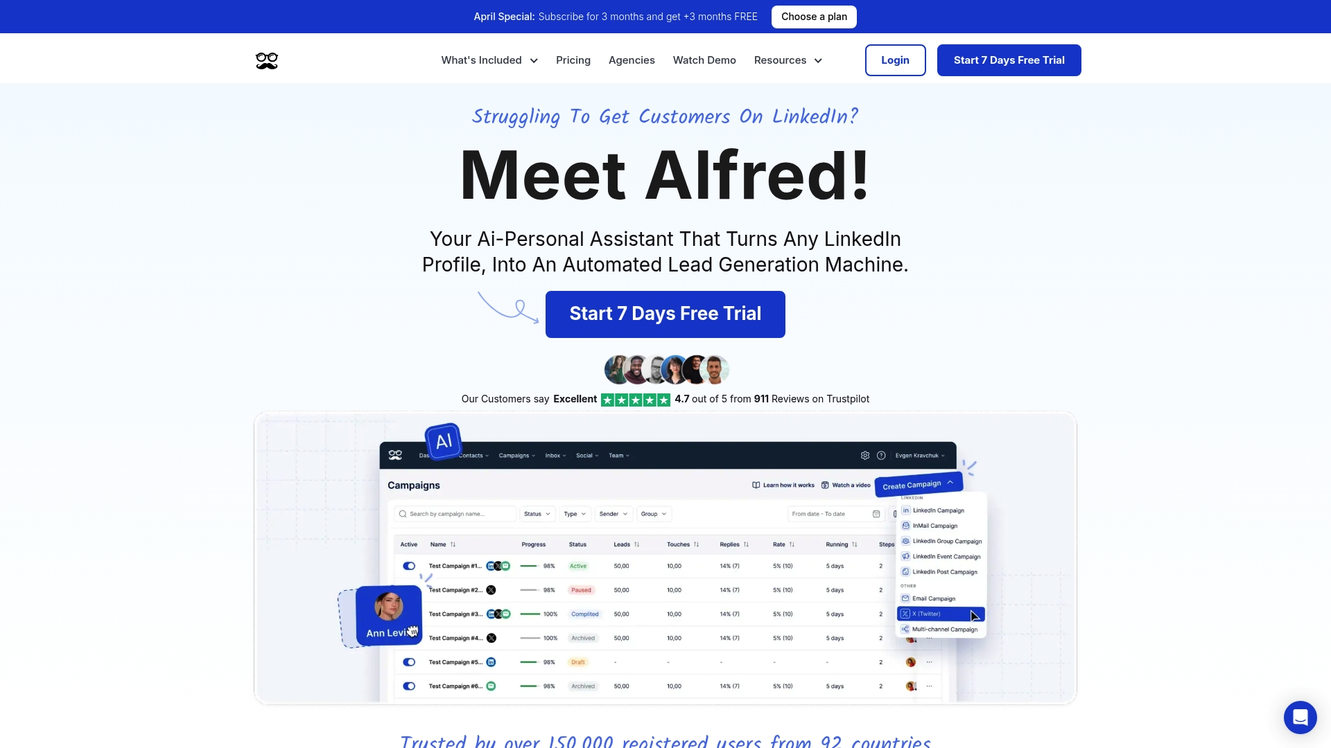 Meet Alfred est un assistant alimenté par IA qui automatise la prospection sur LinkedIn et d'autres réseaux pour gagner plus de 10 heures par semaine en moyenne. Cible les équipes commerciales qui veulent multiplier les contacts sans sacrifier la personnalisation.